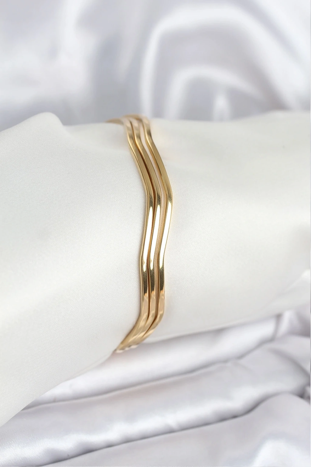 316L Çelik Gold Renk 65 mm Ajda Zikzak Model 3lü Kadın Bileklik