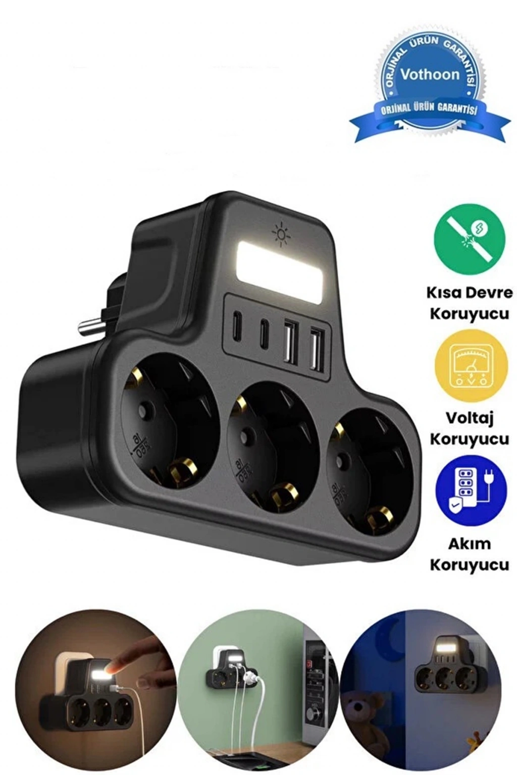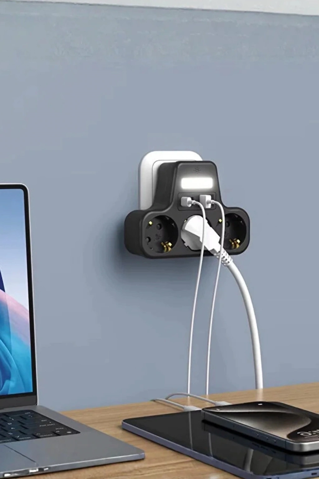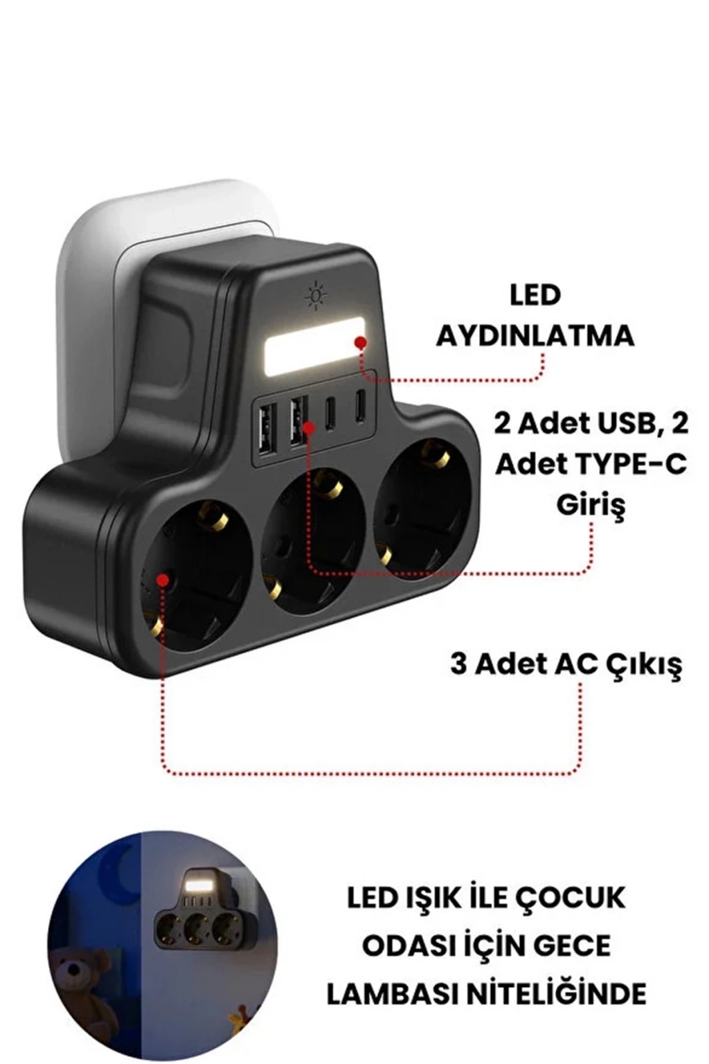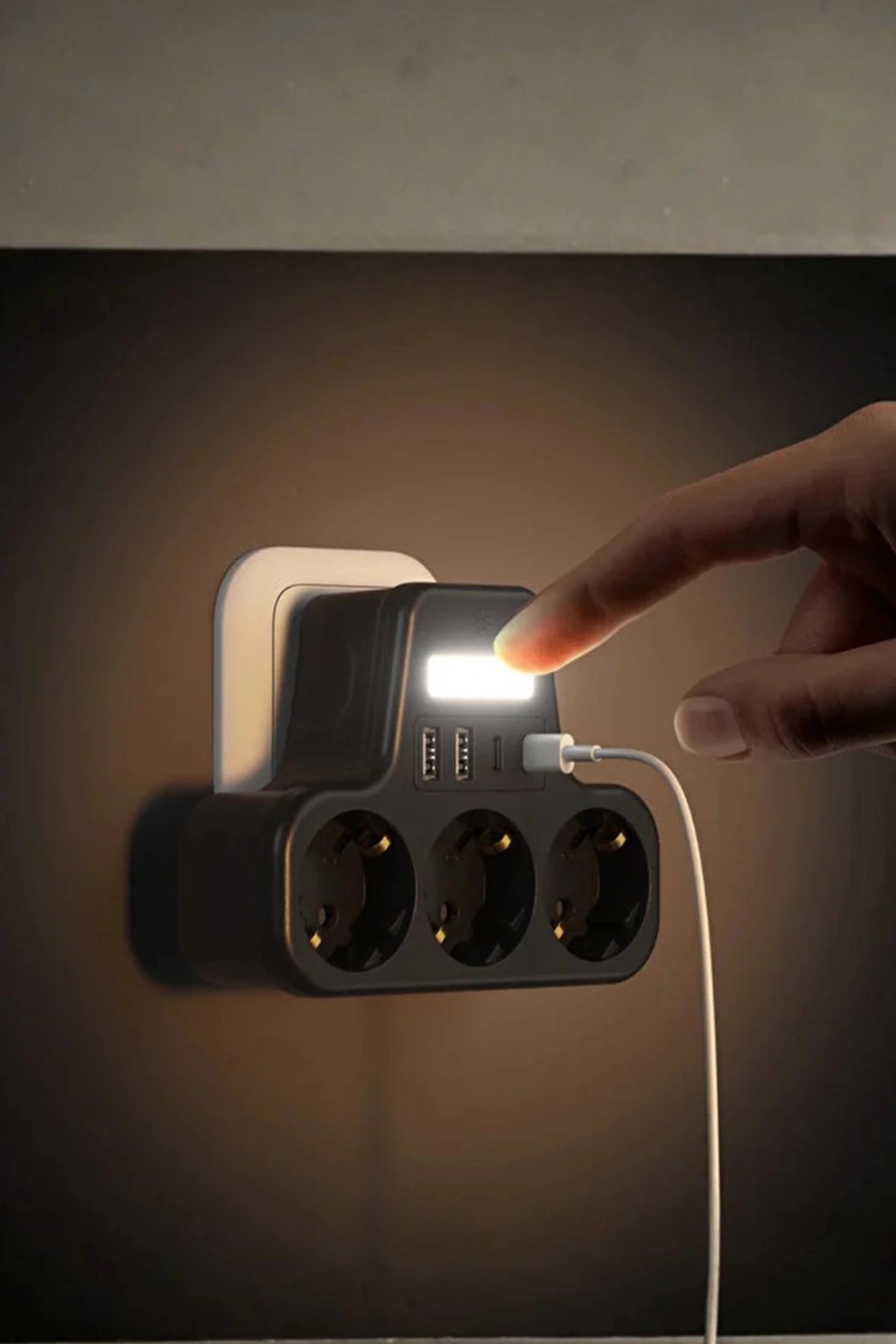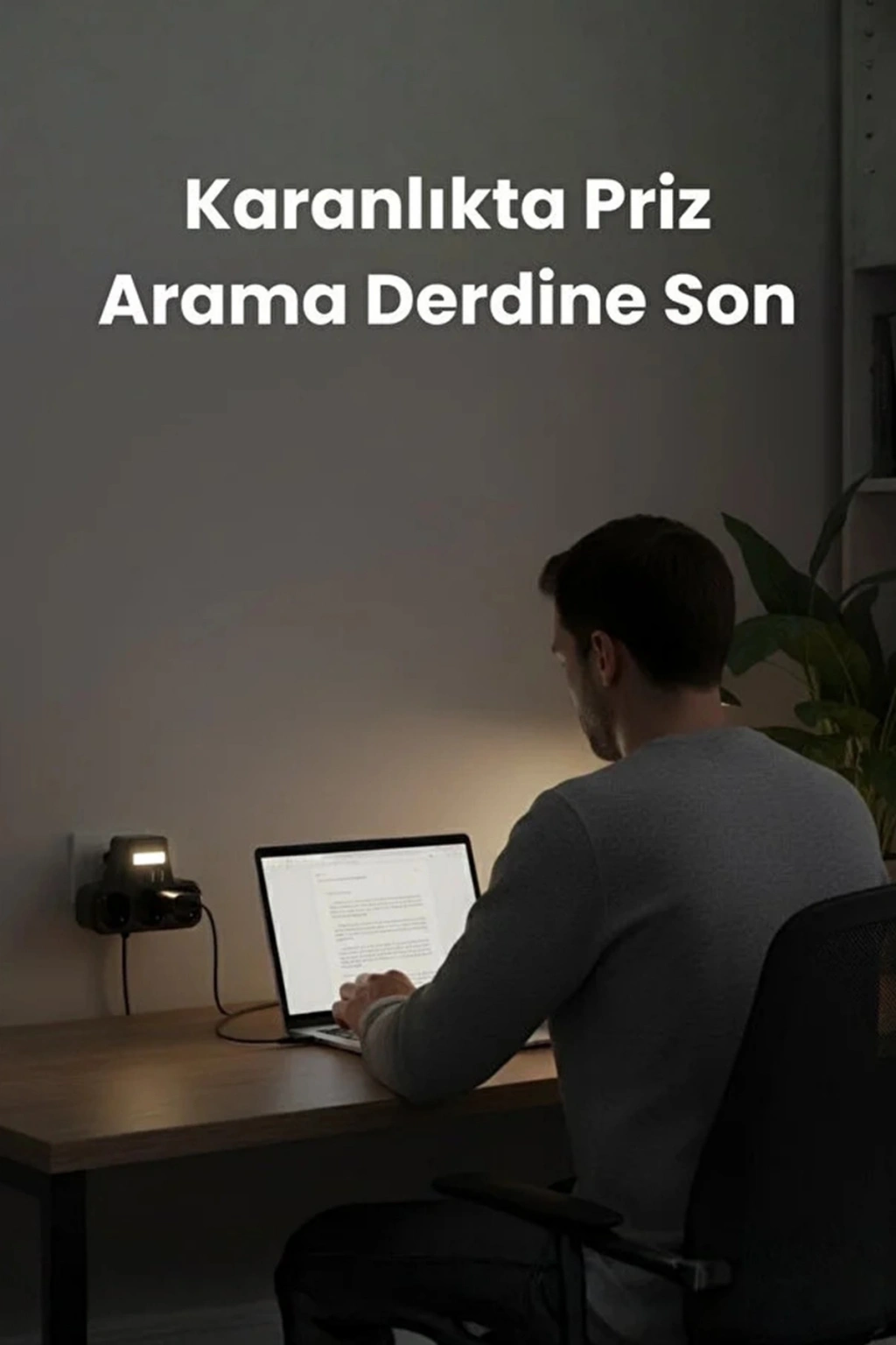 Lp764 Çoklu Gece Lambalı Priz Yüksek Gerilim Korumalı 4’lü Priz 2xusb 2xtype-c Çıkışlı Grup Priz Çoğaltıcı