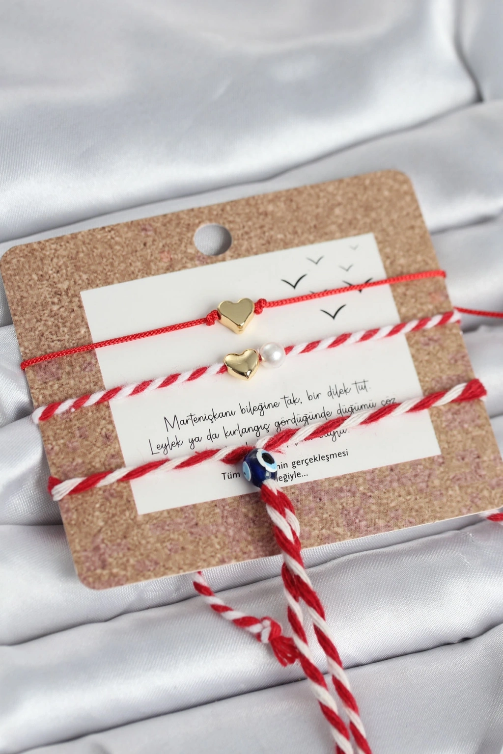 Marteniçka Bileklik 3'lü Kalp ve Nazarlı Model