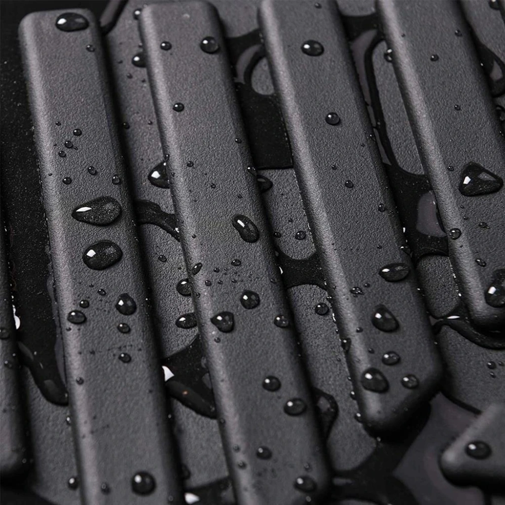 • Özel tasarım Yüksek kenarlıklar ve kanallar sayesinde kir ve pisliği içinde tutarak aracınızın halısını her türlü su, kar, çamur, toz ve topraktan korur. Su geçirmez ve leke tutmaz.