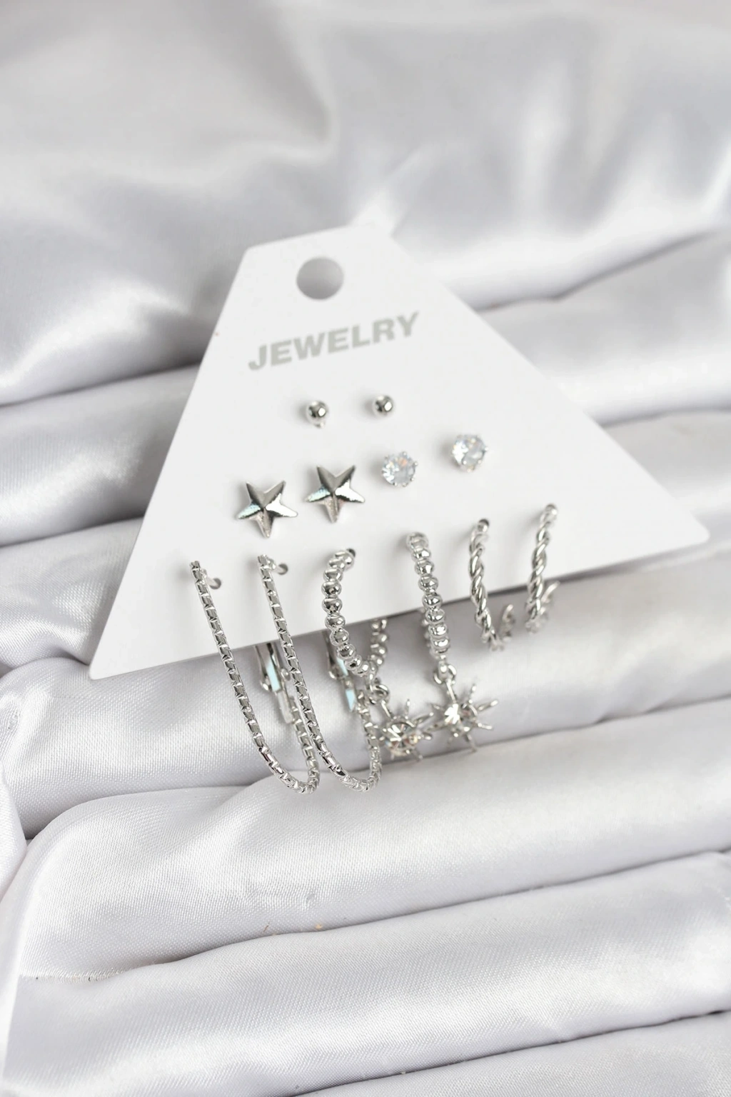 Pirinç Gümüş Renk 6'lı Kadın Küpe Seti