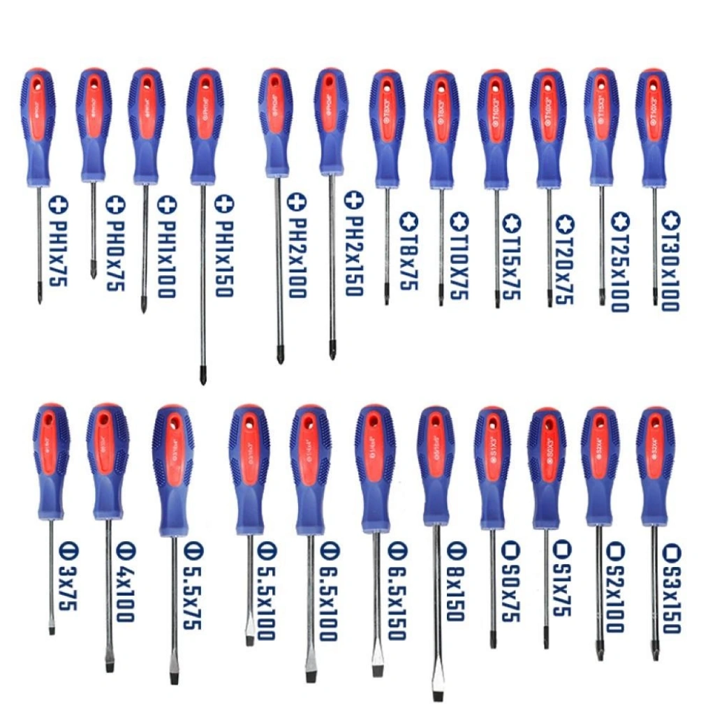 • WORKPRO WP200560 100 Parça Duvar Askı Aparatlı Profesyonel CR-V Manyetik Tornavida ve Bits Uç Seti • Mekanik veya elektrikli aletlerin bakım ve onarımında, profesyonel olarak kullanılabilmesi için paslanmaya ve aşınmaya dayanıklı Manyetik Krom Vanadium Tornavida ve bits vidalama uçlarına sahiptir. • Geliştirilmiş dayanıklılık, paslanma direnci ve korozyon önleyici özellik için ısıl işlem görmüş CR-V çelikten yapılmış 100 Parça, duvar askı aparatlı tornavida seti. • Geliştirilmiş güçlü, siyah manyetik uçlara sahip Tornavida Seti, dayanıklılık ve rahat kavrama sağlar. • Tornavida setinin güçlü manyetik ucu, baş aşağı durumlarda bile vidanızı tutar. Daha iyi kontrol sağlar. • Rahat kullanım için kaymayan, kolay kavranan tutma sapı sayesinde konforlu kullanım imkânı. • Üst düzey kauçuk kaplama sap tasarımı kaymayı önler, el yorgunluğunu azaltır. • Yüksek kaliteli CR-V çelik kullanılmıştır, hassas ve ısıl işlemden sonra vidalama uçları daha sert ve dayanıklı hale getirilmiştir. • İÇERİK: 3x75mm, 4x100mm, 5.5x75mm, 5.5x100mm, 6.5x100mm, 6.5x150mm, 8x150mm Düz Tornavida Takımı • PH0x75mm / PH1x75mm / PH1x100mm / PH1x150mm / PH2x100mm / PH2x150mm Yıldız Tornavida Takımı • T8x75mm / T10x75mm / T15x75mm / T20x75mm/ T25x100mm/ T30x100mm Torx Tornavida Takımı • S0x75mm / S1x75mm / S2x100mm / S3x150mm • 2.5x50mm / 3x50mm Saatçi Düz Tornavida / PH00x50, PH0x50 Saatçi Yıldız Tornavida / T6x50mm, T7x50mm, T8x50mm, T10x50mm Torx Tornavida Takımları • 1 Adet Manyetik Bits Uç Tutucu Tornavida • Z Tornavida; PH1xSL5 / PH2XSL6 • 5/6/7/8/9/10mm Bits Lokma Vidalama Uçları • 1’er Adet 2mm, 2.5mm, 3mm, 3,5mm, 4mm, 4,5mm, 5mm, 5,5mm, 6mm, 7mm Düz Bits Uçlar • 2’şer Adet PH0, PH1, 3Ad x PH2, 3Ad x PH3 Yıldız Bits Uçlar • 2Ad x PZ0, 2Ad x PZ1, 3Ad x PZ2, 3Ad x PZ3 Yıldız Bits Uçlar • 1’er Ad T6/T8/T10, 2’şer Ad T15/T20, 1’er Ad T25/T27/T30 Torx Bits Uçlar • 1’er Ad H1,5 / H2 / H2,5 / H3 / H3,5 / H4 / H4,5 / H5 / H5.5 / H6 Hex Bits Uçlar • 2Ad S0 / 3Ad S1 / 3Ad S2 / 2Ad S3 Bits Uçlar
