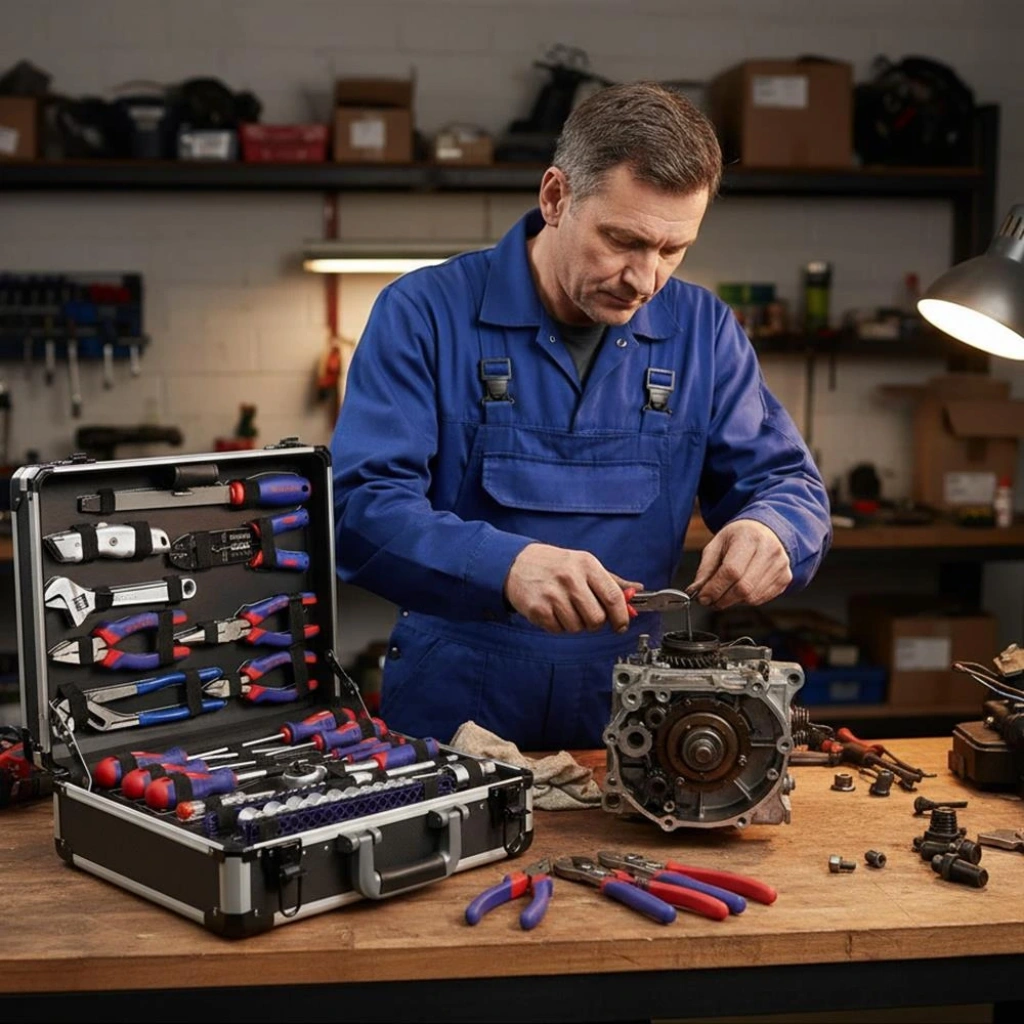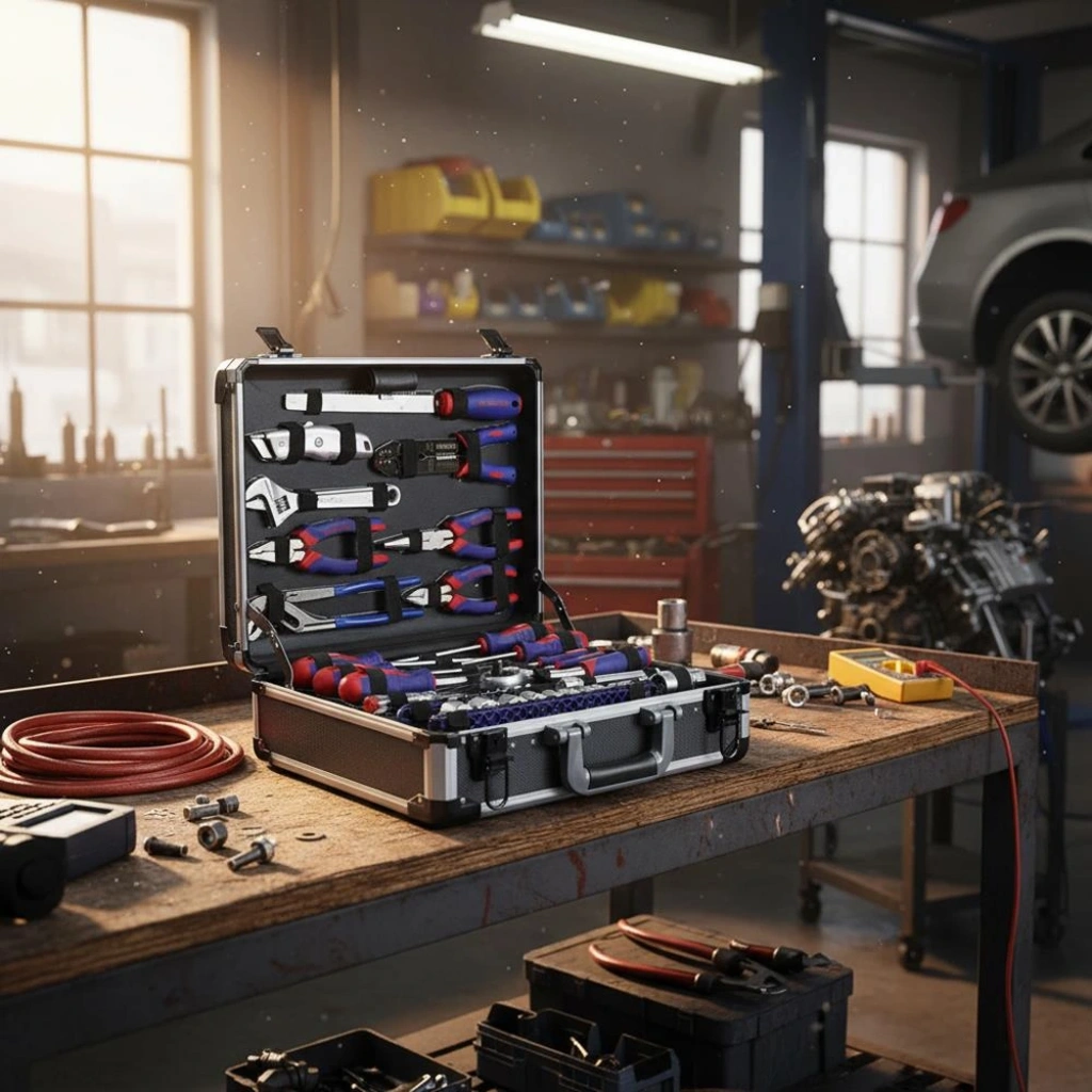 • Hassas Tornavida, Kargaburnu, Ayarlı Anahtar, Çekiç, Metre, Allen Anahtar Takımı, Lokma Uçları, Kombine anahtar takımı, Su terazisi, Demir Testere, Bits Vidalama Uçları, Maket Bıçağı, Kablo Bağı, Eğe, Fort pense, Kablo Sıyırma/Sıkma Pensesi ve bu aletlerin yerleştirilip taşınacağı Alüminyum takım çantasından oluşan genel maksatlı profesyonel tamir, bakım ve montaj setidir.