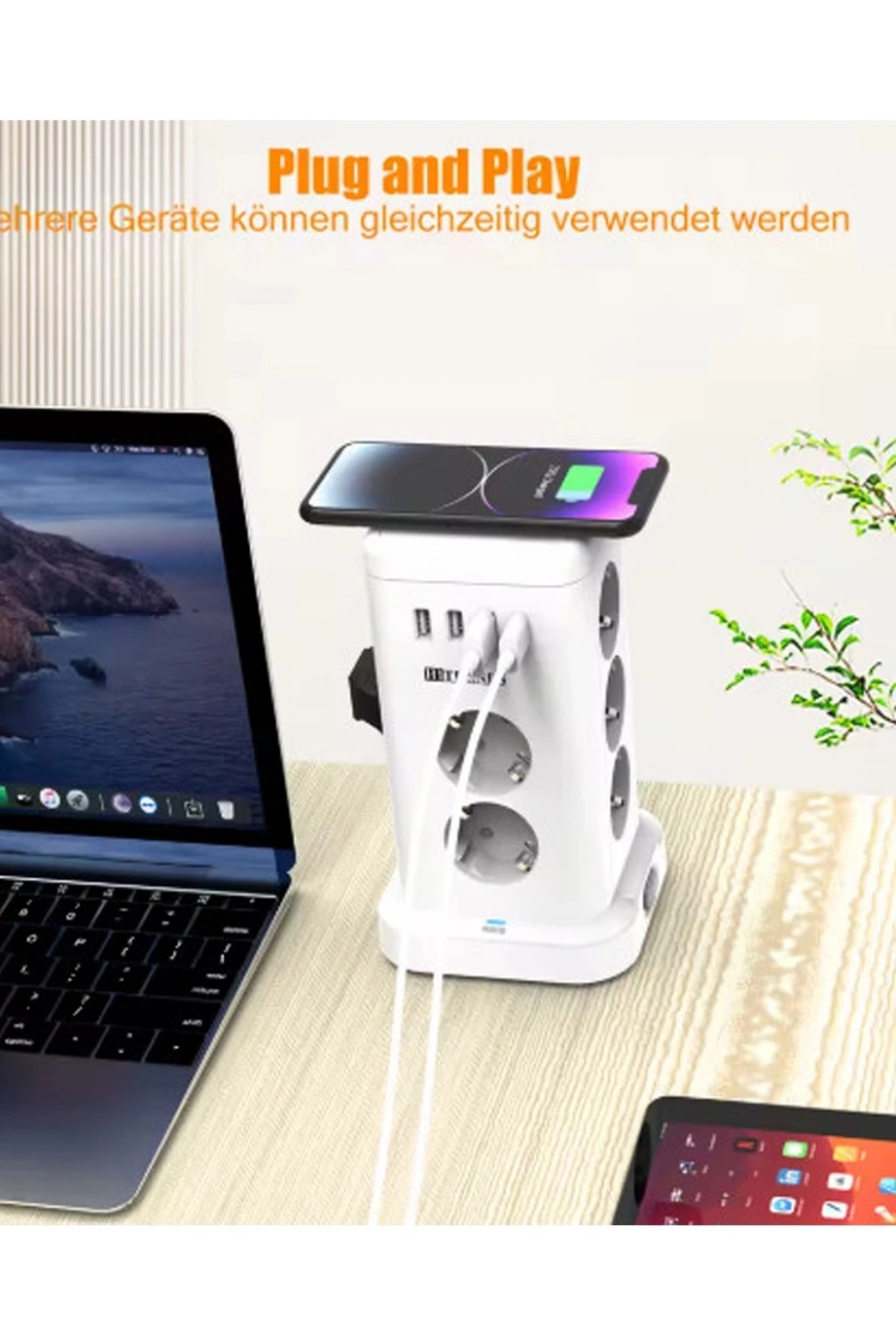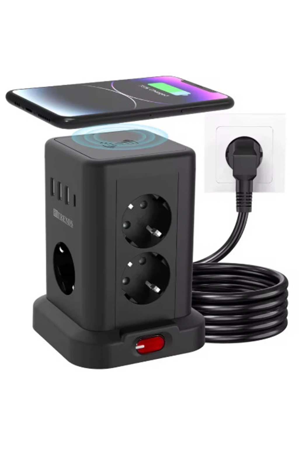 Wp711 Akım Korumalı Priz Kablosuz Şarj İstasyonu 11x Soket 3x Usb 1xtype-c Kablolu Grup Priz