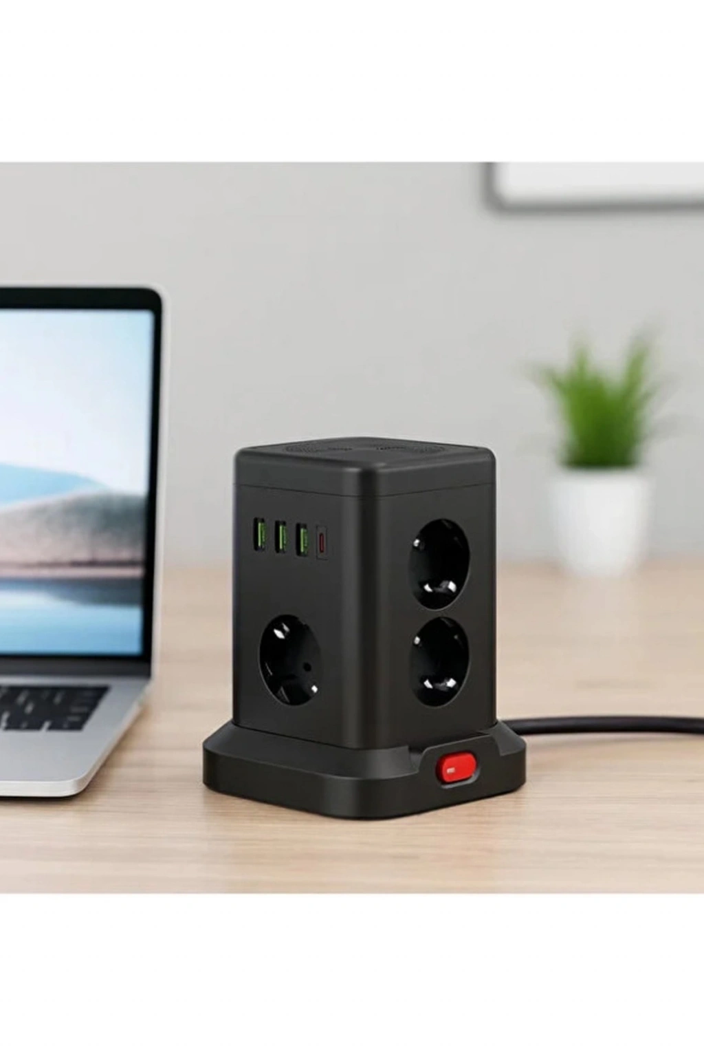 Akım Korumalı Priz 2 Usb + 2 Type-c Girişli 2 Metre Kablosu Anahtarlı Ve Duvara Monte Edilebilir